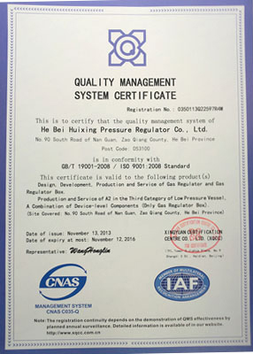 主導(dǎo)產(chǎn)品切斷式煤氣調(diào)壓器通過河北省經(jīng)濟委員會、省標(biāo)準(zhǔn)計量局認可,獲得采用國際準(zhǔn)認可證書